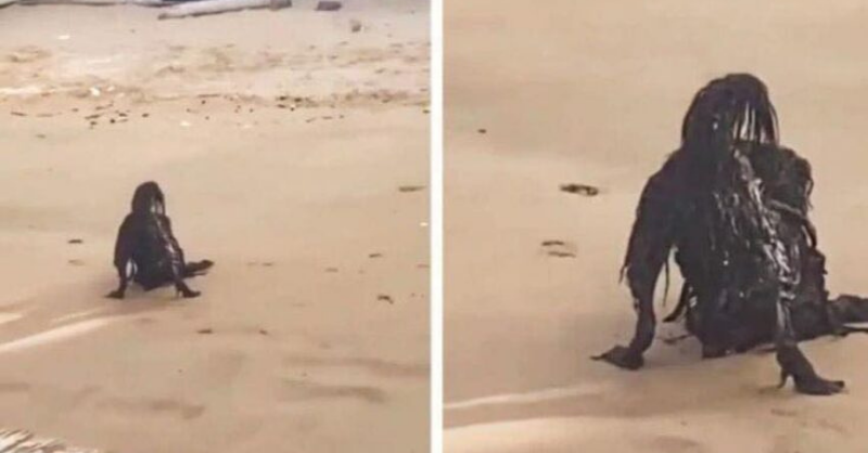 While sunbathing on the beach, a man photographs a horrific creature…
