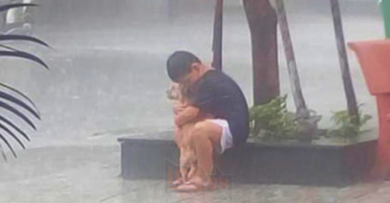 The image of a boy hugging a dog in the rain after finding the dog that had been lost for many days melted millions of hearts A heartwarming...