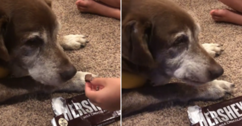 Family gives chocolate to their senior dog as a final treat: “No dog should go to Heaven not knowing how chocolate tastes”