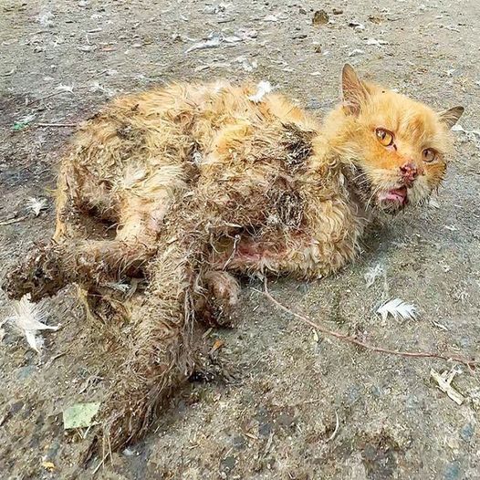Poor cat was living his last moments on the roadside but no one came to help him!