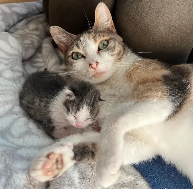 A kind person provided safety to a cat from wind and rain. She woke up to a tiny miracle kitten in the room one morning. Woman Saves Abandoned...