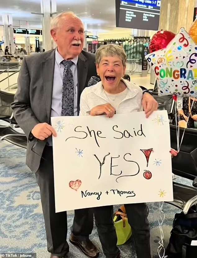 Man Surprises His High School Sweetheart With Proposal At The Airport After 60 Years Apart, The Video Goes Viral