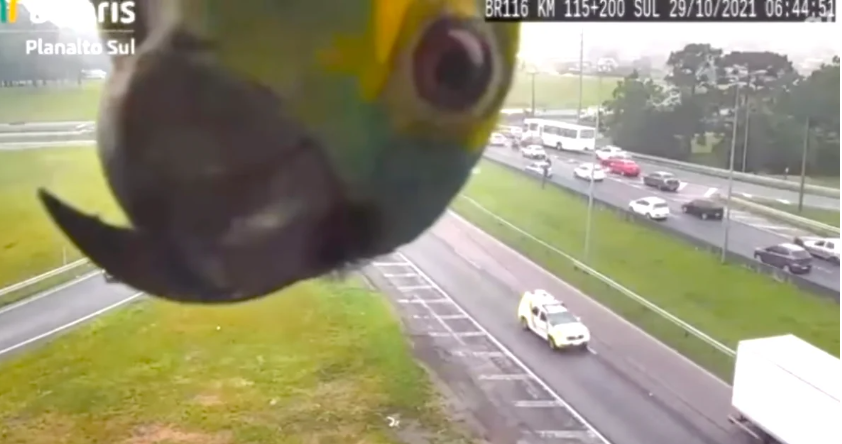 Parrot Keeps Checking In From Highway Traffic Camera
