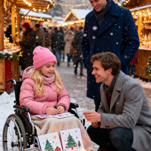 The winter market shimmered with twinkling lights and the warm scent of cinnamon. Snow fell gently on the cobblestone square, and vendors called out their wares beneath striped...