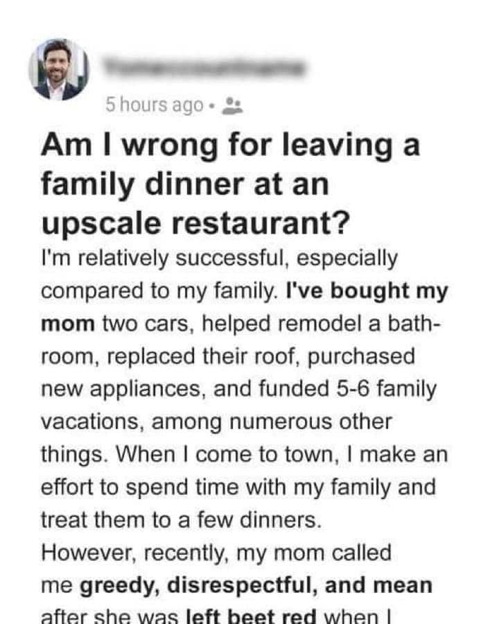 Am I wrong for leaving a family dinner at an..