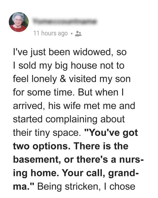 My Daughter-In-Law Forced Me To Choose Between Living In Basement Or Nursing Home