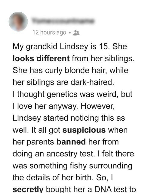 A grandmother always felt her middle granddaughter looked slightly different from the rest of the family, so she made a decision to get her granddaughter a DNA test...