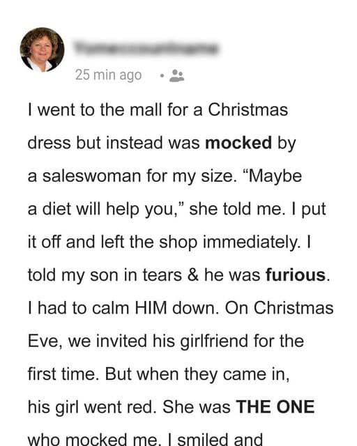 She decided to play fashion critic at the shop, and when I wore a dress that she chose for me, she started mocking me. Loud enough for everyone...
