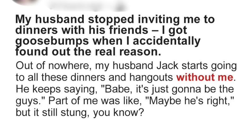 I Was Heartbroken When I Accidentally Found Out Why My Husband Stopped Inviting Me to Dinners With His Friends