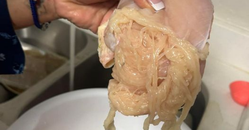 Mom’s Grossed Out by Chicken Breast That Turns into Spaghetti