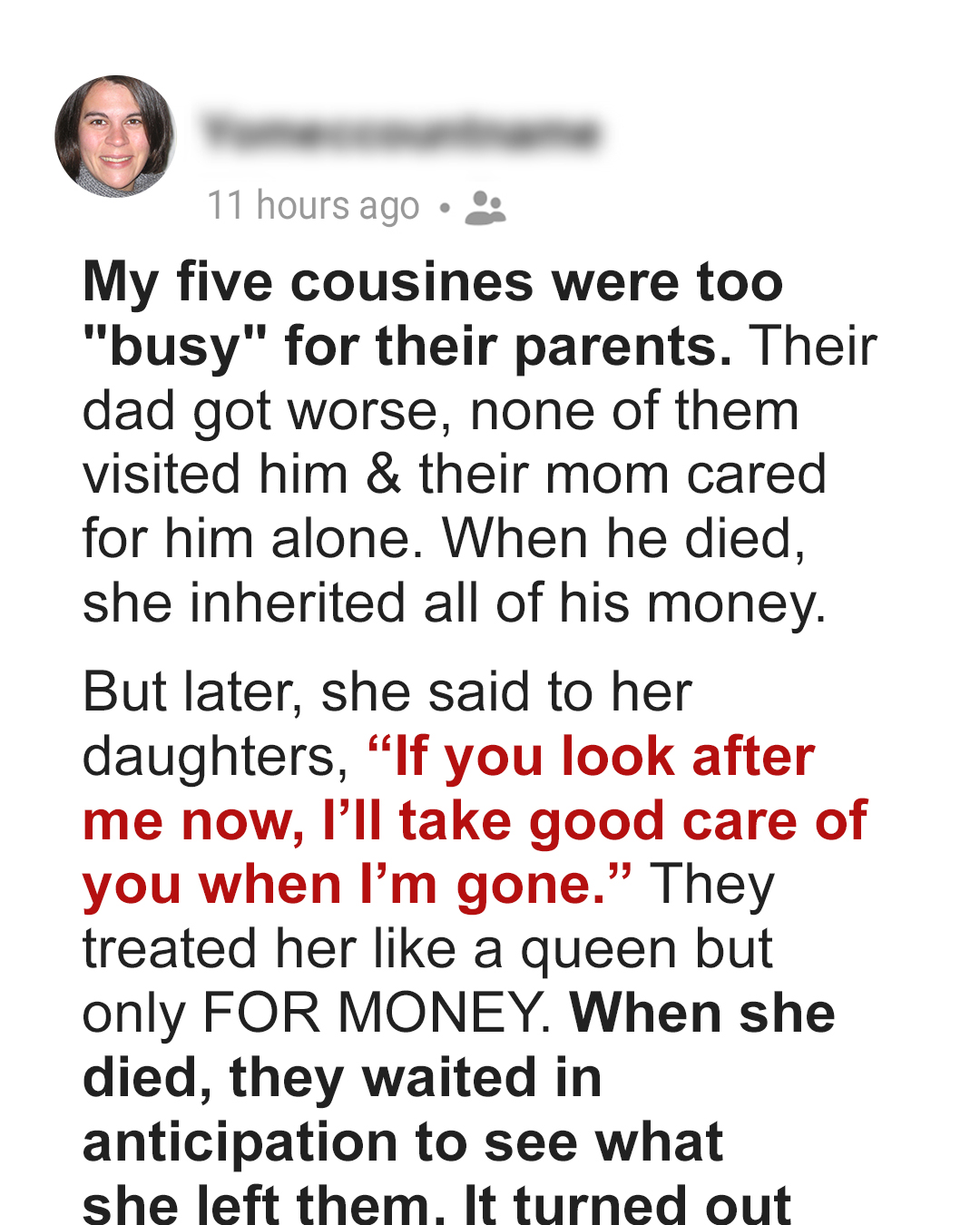 5 sisters took care of their Mom only to get an inheritance and got surprise checks when she passed away